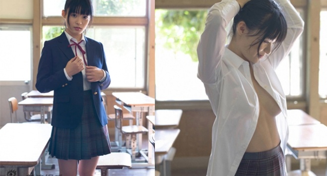 18岁日本嫩模星名美津纪教室脱衣险走光 真空上演制服