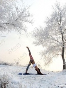 吉林女孩-30℃挑战冰雪瑜伽美图曝光 与江边的雾凇美景