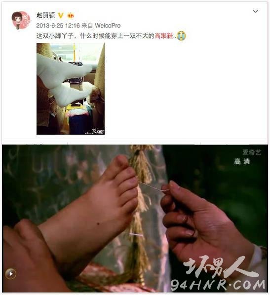 总而言之,就是赵丽颖的鞋子永远不合脚,永远大一号。而在《花千骨》中,赵丽颖的小脚曾经有过短暂的出镜,小小的肉肉的,戳中了许多粉丝的萌点: