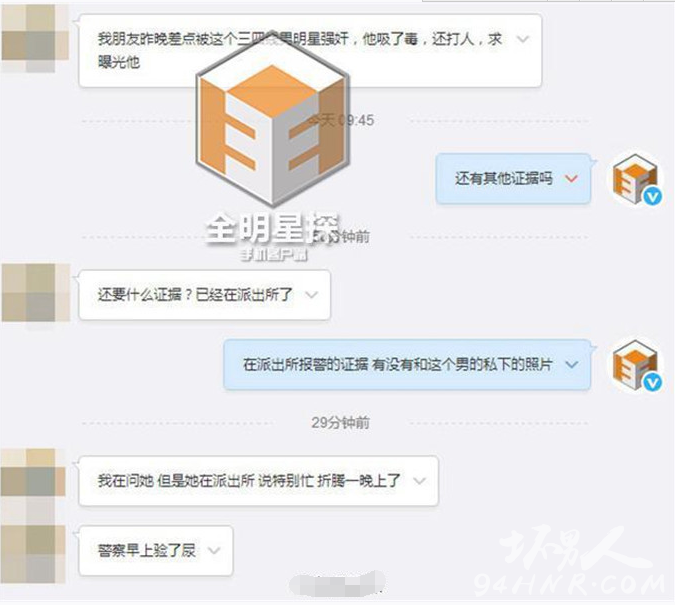今天上午,有网友向全明星探爆料自己的朋友差点被“三四线男明星”张天柏强奸,张天柏“吸了毒,还打人”,爆料人还透露目前他的朋友已经报警,与张天柏两人都在派出所。