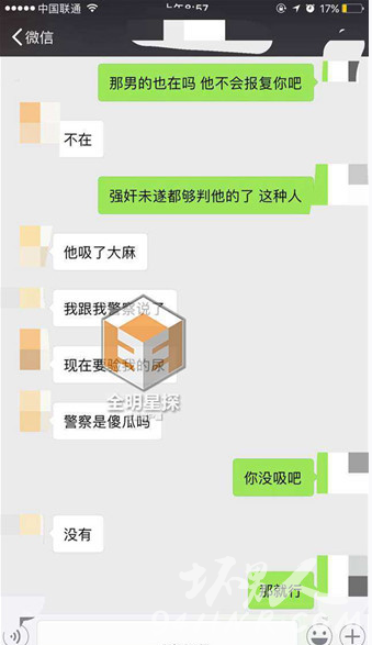 爆料人提供了与他的朋友、疑似受害者的微信聊天截图,疑似受害者表示张天柏吸了大麻,目前她已经报警,警察要验尿。