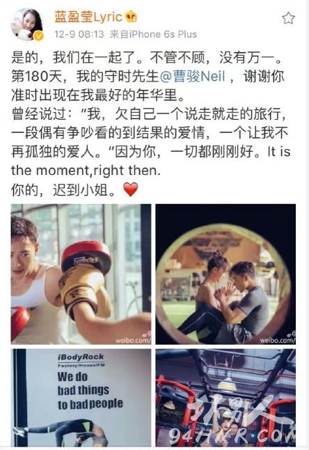 今日,演员蓝盈莹和曹骏在微博上面大方示爱,恋情公开。蓝盈莹称“是的,我们在一起了。不管不顾,没有万一。”
