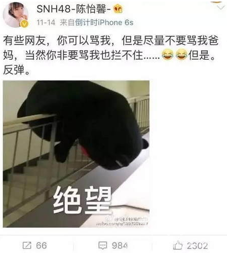 其实陈怡馨之前的微博也透露过她个人的精神状态,需要安眠药助眠。入团两年陈怡馨的发展不算最顺利的,人气也不是最高的,但是依旧受了不少网友的不堪入目的谩骂。。。。。