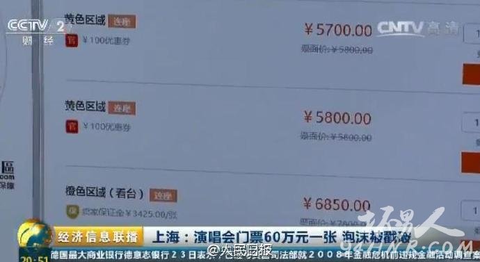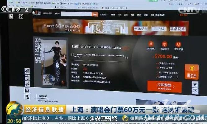 【王菲演唱会门票60万元一张!前晚,天价炒作泡沫破灭...】据央视,本月中旬,号称全国仅演一场的王菲演唱会的门票一度炒出天价,最高报价甚至高达60万元。但就在前晚票价突然雪崩,部分票价甚至跌穿票面。原价7800元一张的内场票,现标价6850元。业内人士指出,天价票伤害了很多人歌迷感情。