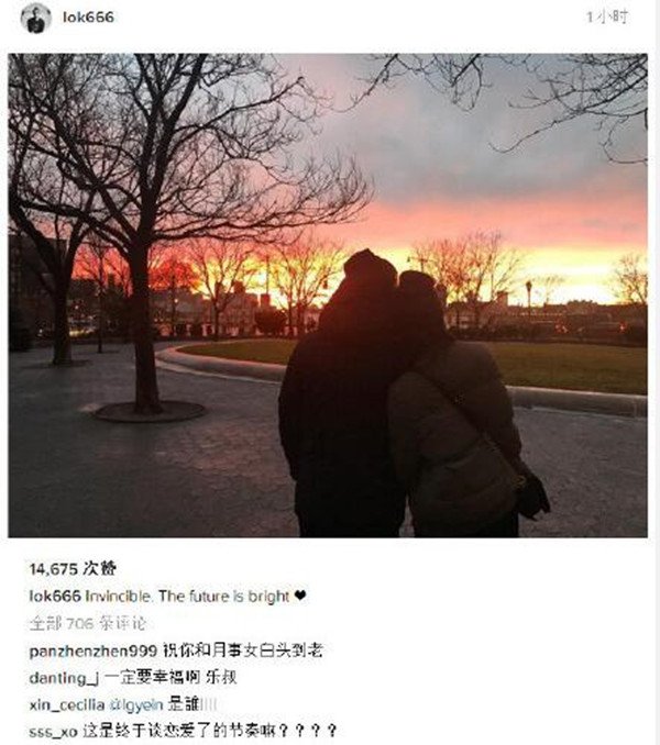 大概是出于对女友的保护,余文乐今日(12月30日)终于在ins发布亲密合影,照片中余文乐与一位女性相互依偎,十分幸福。余文乐还写道:“Invincible. The future is bright(不可战胜,未来是光明的)”,疑似承认恋情。