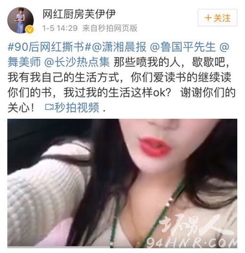 面对七嘴八舌的评价,1月5日下午,主播“芙伊伊”发表微博呵斥,还附上视频,视频中她说“那些网络上的喷子你们有什么资格说我啊我没读书还不是一样的可以开跑车,背LV的包包,还限量版的呢……”