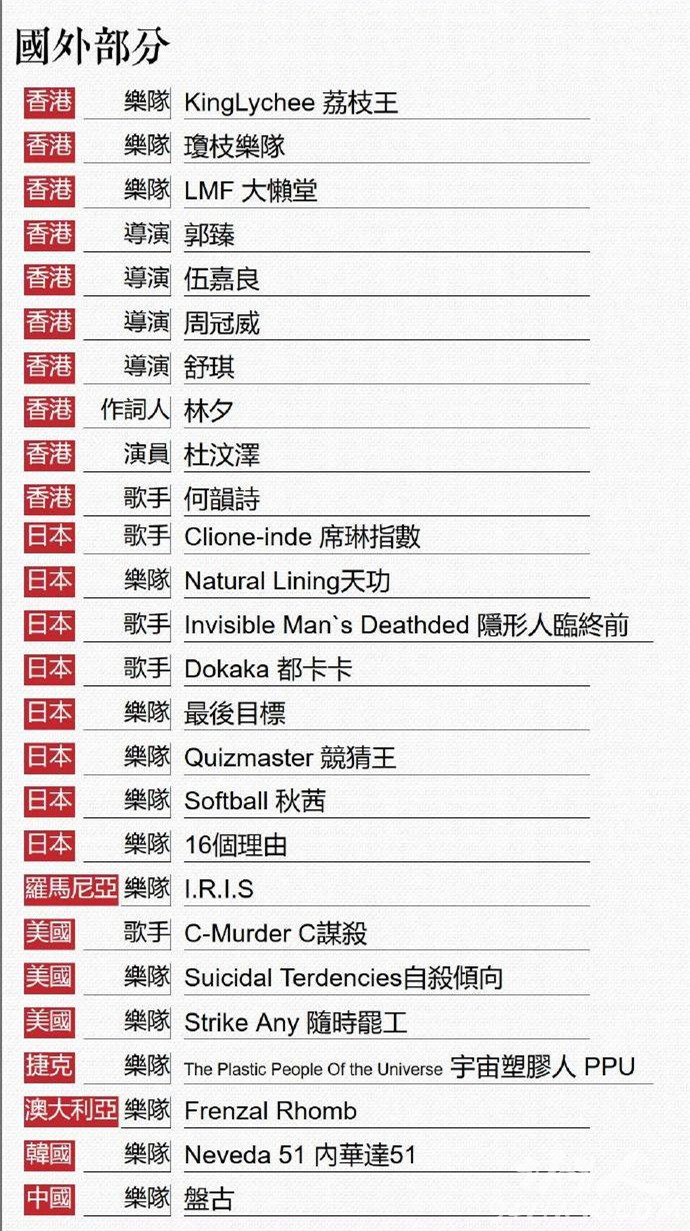 此外,对于此事,还有台湾媒体称,大陆文化部的“封杀计划”不只涉及台湾、香港,包括大陆、韩国、日本、美国、澳洲、罗马尼亚、捷克等国歌手艺人都名列其中,范围相当广。