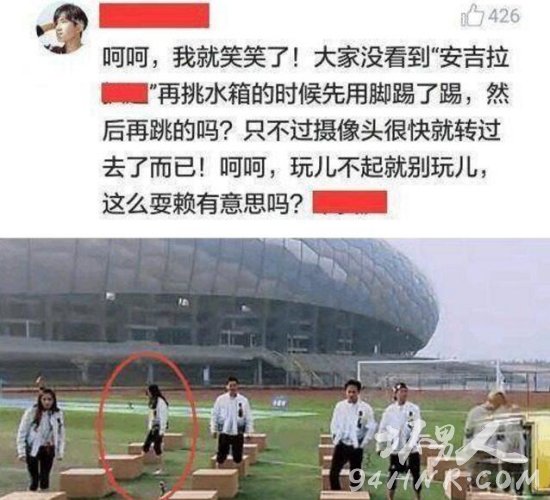 还有,在那个跳水箱环节之中,baby在跳之前还用脚踢箱子,有网友表示“玩不起就别玩”,这不是在耍赖吗!
