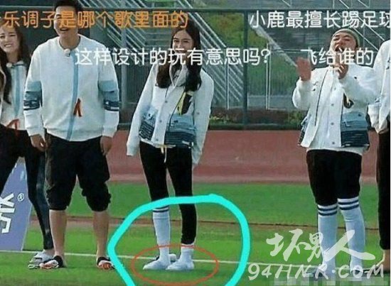 跑男成员站在足球上录制节目时大家统一着装,有人直接穿拖鞋,有人穿上袜子再穿拖鞋,而baby的脚上却和所有人都不一样。