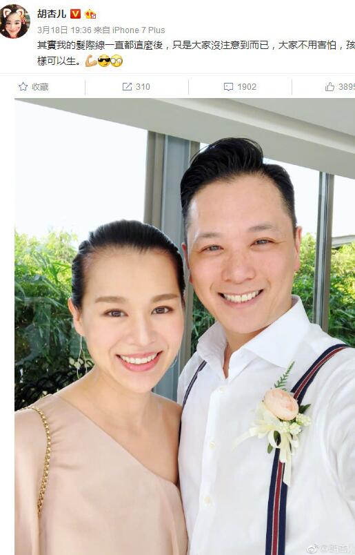 自从胡杏儿嫁作人妇之后,就被不少网友称赞仍然貌美如花,但这次就硬生生被老公打回原形,尤其是他在网上po出自己老婆的黑照,搞的一早胡杏儿不得不对自己发际线的问题作出回应!