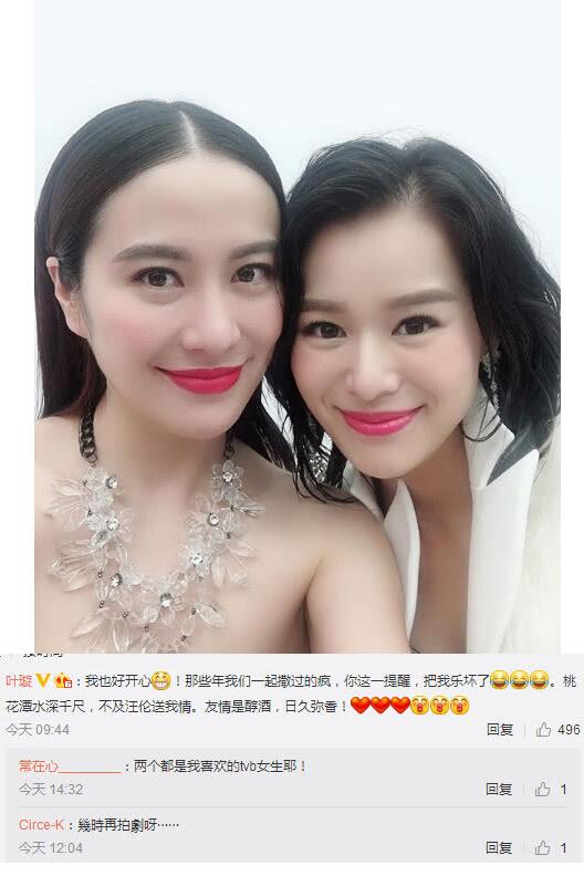 甚至叶璇曾经说过,在TVB时,对她最好的人就是杏儿,如果杏儿是男的,她一定嫁她。因为拍戏走在一起的好姐妹,就这样在片场常常都是形影不离的!