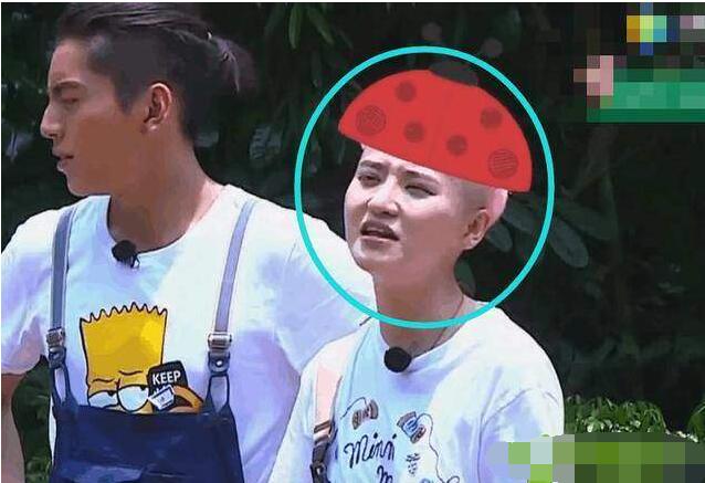 这枚叫蒋瑶佳的女嘉宾呢,全程头顶一片红,也不晓得是瓢虫还是草莓什么的,乍一看还以为是顶帽子,但其实竟然是后期劈上去的“马赛克”!