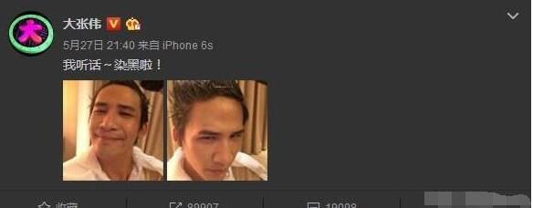 这不,大张伟已经火速把绿毛又给染黑了……