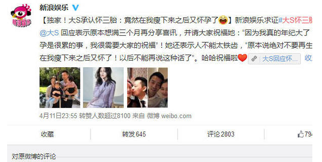 前段时间,大s因为癫痫病发作晕倒在家里,后来还好及时被送进医院,很多人都简单的一位大s只是旧病复发了,但是没想到进去医院检查是怀了第三胎,而她本人也亲口承认,自己确实怀了第三胎。
