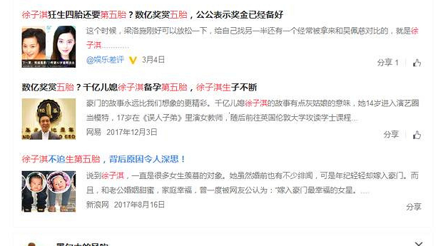 大多数女生都有一个嫁入豪门的梦想,就算是女明星也一样想嫁入豪门似乎并没有那么容易,很多嫁入豪门的女子或者女明星往往会以离婚收场,究竟是为什么那,就连嫁入豪门的大s竟然为了巩固自己的位置不顾年龄生下第三胎,同样的徐子淇竟放出豪言想为李嘉诚生第五胎,那究竟是什么原因让嫁入豪门的女子一个个都那么喜欢生孩子呢,是不是豪门中会有重男轻女的是想呢?