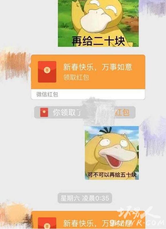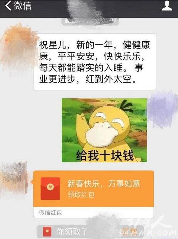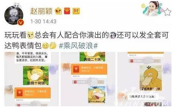 原来,林更新给赵丽颖拜年,说了一段祝福话,赵丽颖回了个给我十块钱的可达鸭表情包,而可爱的林狗也就诚实了发了个红包给她。