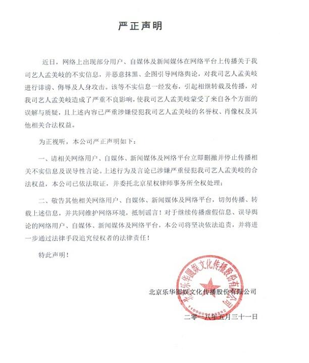 孟美岐已经拿下了两次的创造101的第一了所以大大提到知名度也算正常,不过被黑总是不可避免的。近日网上说那个谣传消息出初中时期的孟美岐在初中时期是一个T而且在贴吧中寻找419而且还是带这闺蜜前去419的,是不是有一些人还不知道419是什么意思吧,其实419就是一夜情的意思了。不过孟美岐经纪公司马上发文辟谣了并表示上述行为及言论已涉嫌严重侵犯孟美岐的合法权益,公司已依法取证交由律师处理,希望大家不要乱传谣言,谣言传多了可是要付法律责任的。