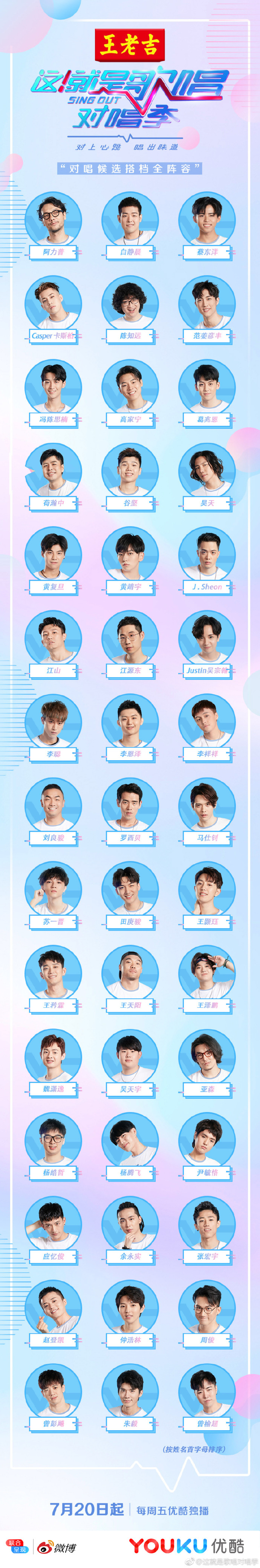 暑假到来了不仅仅是各大卫视个我们准备了准备了无数的电视剧和综艺,就连一些播放平台也已经开始了展开了各种综艺了。优酷视频曾经开办了一个非常顺利的综艺节目《这就是街舞》我想网友们都应该看过吧而在这个暑假优酷给我们带来了另一档综艺节目《这就是对唱》已经定档于7月20日了,今天《这就是对唱》终于曝光了男女生选手名单了,让我们去看一下吧。