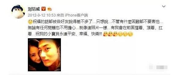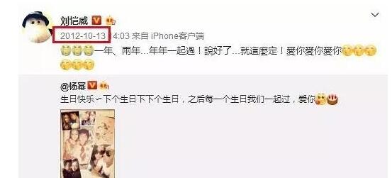 12年的时候,俩人的生日祝福甜的不行,杨幂生日刘恺威说会为她遮风挡雨。