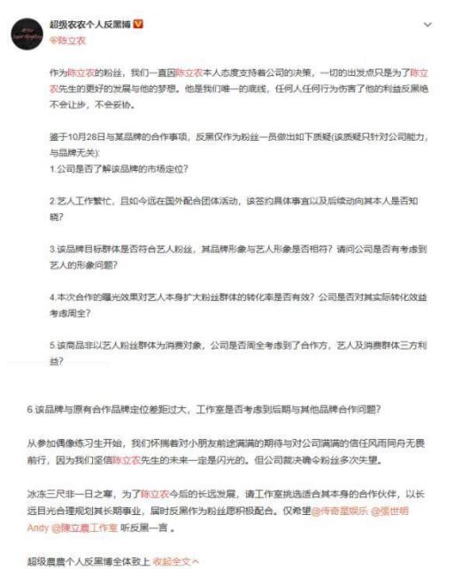 2、认为该品牌是黑心微商,替该品牌宣传对陈立农的个人形象有害。