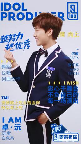 《青春有你》因为是第二季的偶像练习生所以受到很多女观众的喜欢和追捧又有一大批长得好看的小哥哥要上台表演了据说这一次应援选手达到了100名而且还是在精挑细选之后选拔出来的经过上一期的节目的热度相信这一期也肯定不会差小编在其中发现了一名已经出道的组合的选手他就是卓沅是一个00后但是却已经出道ZERO-G男团了让我们去了解一下他的个人资料吧。
