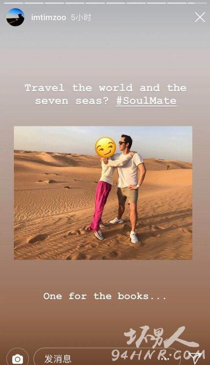 该男子还发了一则动态,是他与一名女子在沙漠中亲密搂肩,更是配文称对方是灵魂伴侣。虽然打了马赛克遮掩,但从身材和鞋子看,很像是周冬雨。两人疑似正在恋爱中。