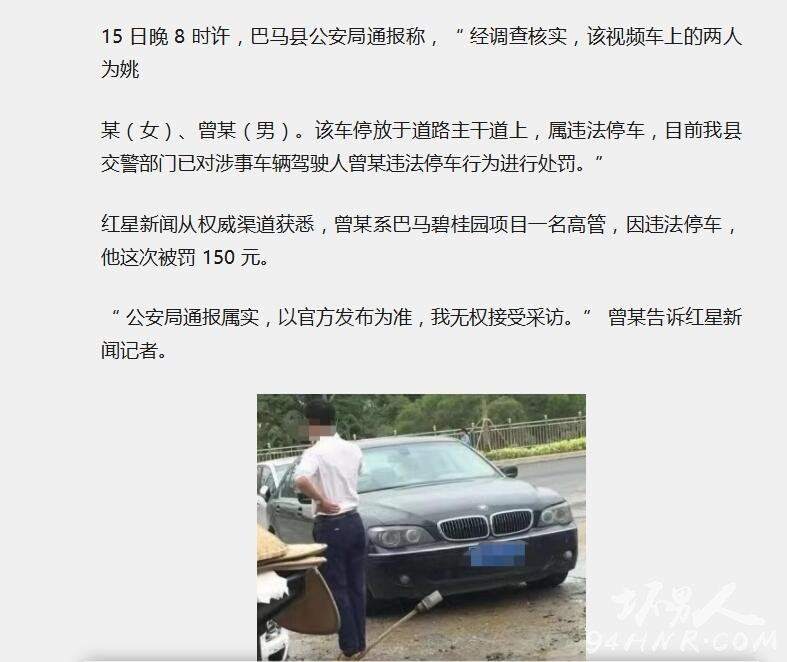 近日,在河池巴马城区,一辆桂A牌宝马车因几段视频被网友热传热议,有网友称一辆宝马,定义了新的生活,不仅涉嫌违停还有伤风化,都不知道这些人是怎么了,是为了寻找刺激才这样做的吗?
