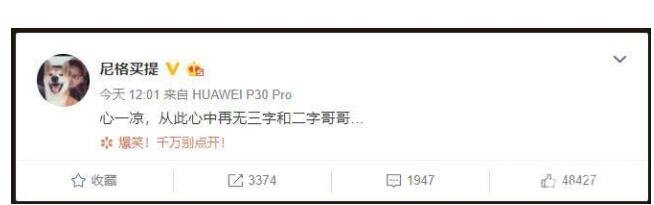 11月17号,主持人尼格买提在微博发文回应昨晚被康辉撒贝宁忽略自己一事,尼格买提发文称“心一凉,从此心中再无三字和二字哥哥……”还称还好我有另外的二字和三字兄弟(姐妹);配的是沙溢阮经天扮空姐的照片!
