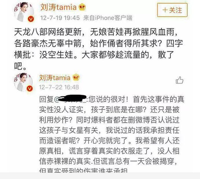 看到这位自曝刘涛旧照片的导演和刘涛关系看起来不错的样子,有不少网友都在下面评论希望导演出来讲讲以前的故事,更有人直接评论刘涛在乡下还有孩子,看来网络中关于刘涛在寺庙有私生子的传言有很多人知道。看到这些评论该导演也直接回应了“假的”二字,该导演现在看起来名气并不是很大,也完全没有必要为了刘涛去说谎,但是他直接在评论中回复是假的其实也是不希望这些谣言再继续散播下去!