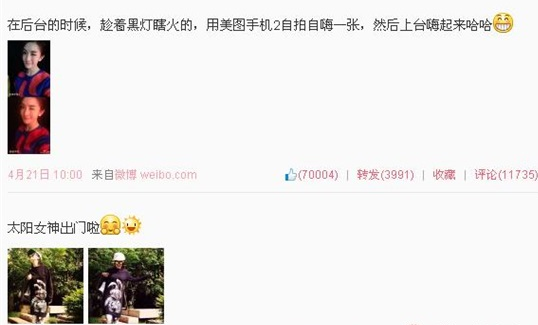 不过今日的心情倒是不错。这两天频频在微博晒美照,自封“太阳女神”延续自己的搞怪风格。虽然很忙,但网友们不忘催谢娜生孩子,谢娜日前总算是松口了称预计明年生小孩。