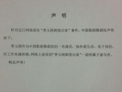 李玉刚出家一事中国歌剧舞剧院文件声明否认 只是为了沉淀艺术