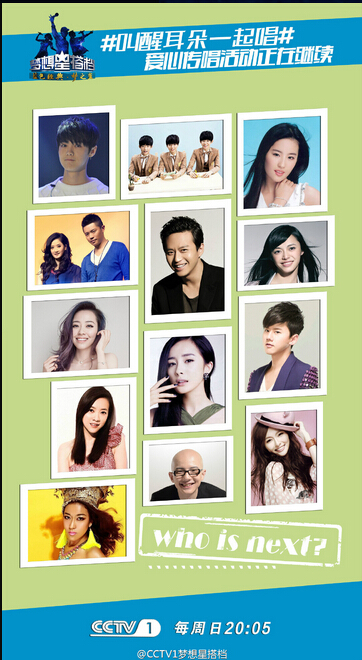 #梦想星搭档#本周星搭档的播出时间为周!日!晚八点零五哦!周五播出的话你们的遥控器实在是太忙了周日晚央视一套!叫醒耳朵一起唱吧~