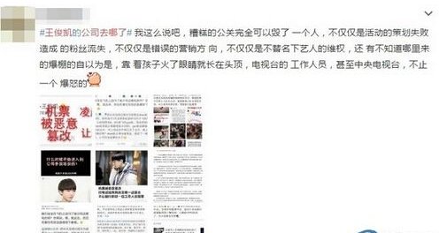 据了解,王俊凯1月时因机票遭到篡改被困在机场,险些与现场歌迷发生冲突,但事发至今已经半年,却未见公司调查出结果。6月则被曝小小年纪就谈恋爱,也未见经纪公司出面解释,而是他自行在微博澄清才让风波平息。种种事件让网友不禁在微博上发起“王俊凯公司去哪了”的抗议。