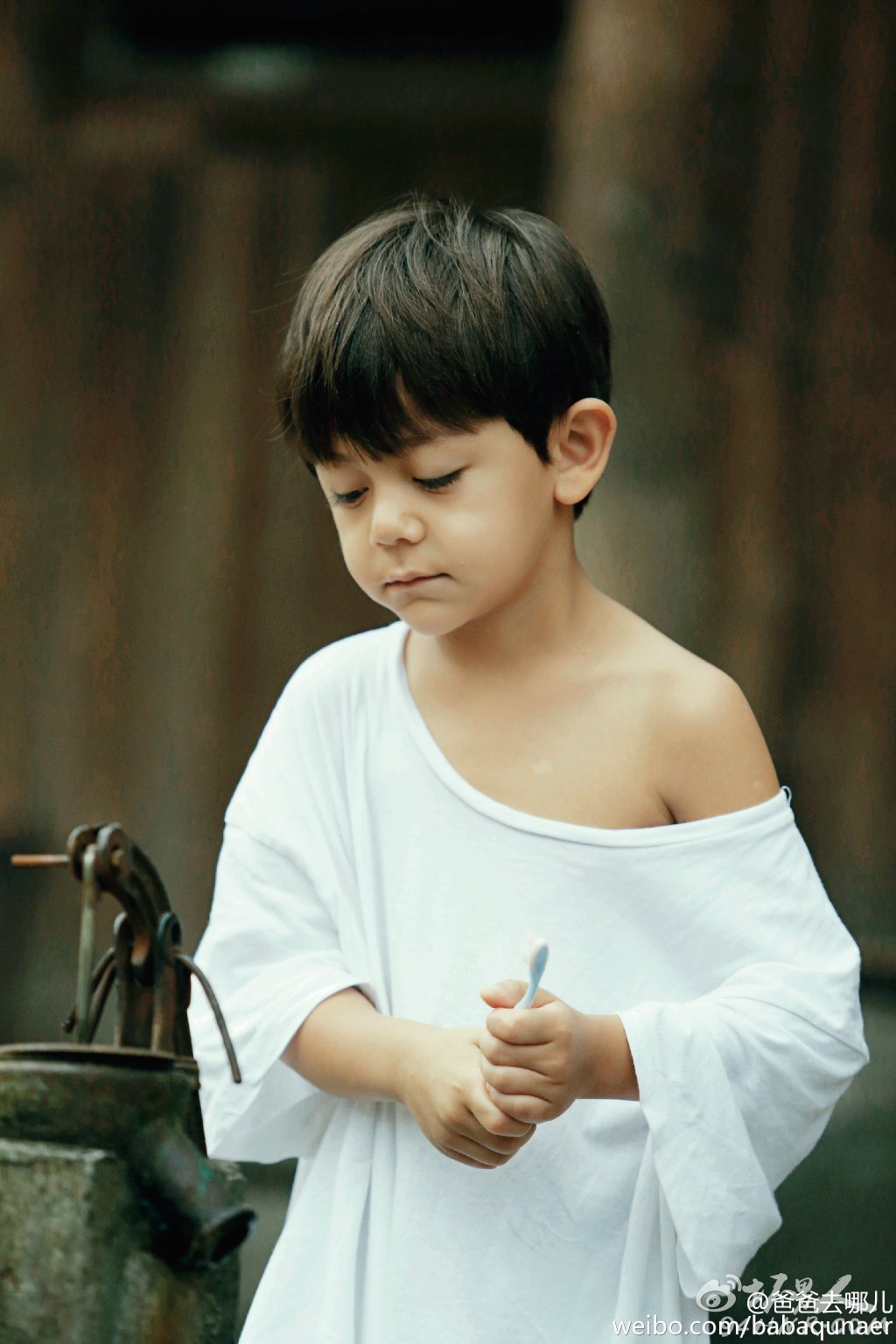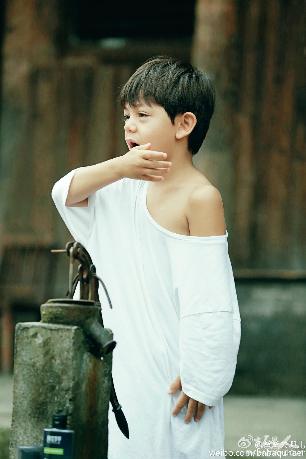 刘烨儿子刘诺一爸爸去去哪儿刚起床照片|视频 香肩微露刷牙样子好美