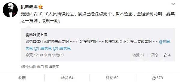 @扒圈老鬼:跑男西安10.10人员陆续到达,景点已经踩点完毕,暂不透露,全程录制两期,嘉宾之一黄渤,录制一期。