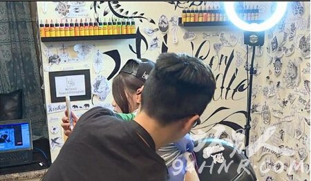 纹身过程中女主播有说有笑,并反复确定文字效果,并和助理一起讨论EDG的落败原因。