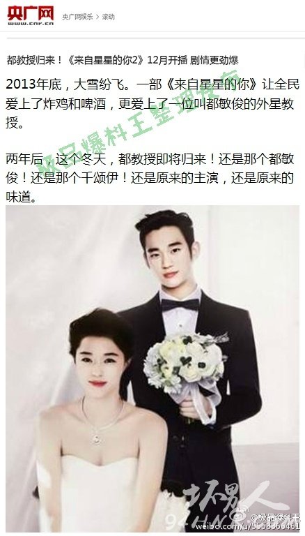 2015年来自星星的你2下个月12月要开播|具体时间 剧情更加劲爆