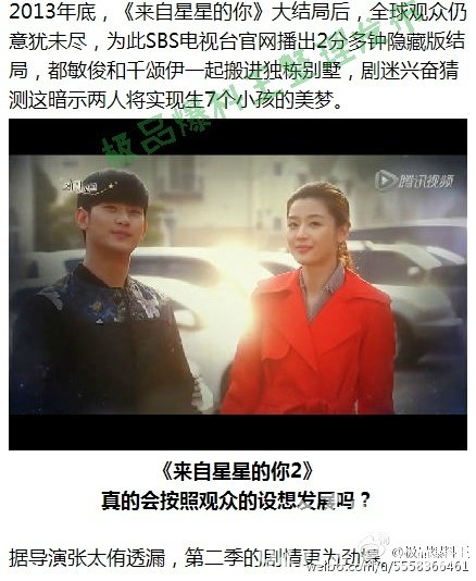 【《来自星星的你2》下个月要开播啦,据说剧情更加劲爆】乃们心心念的#都教授#回来了!男女主演不变,千颂伊怀上外星宝宝,还将遭遇外星情敌~艾玛男女神的世界我们看不懂,连情敌都是外太空的高逼格,更多劲爆剧情自己看图哦~