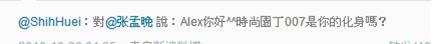这条微博有两个信息,第一:他曾用名张天成;第二:他还有个高端大气的英文名Alex,alex英文名证据如下
