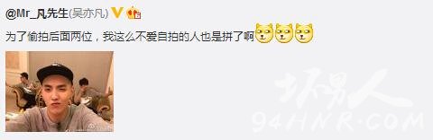 吴亦凡还配文吐槽林更新和大鹏,他写道“为了偷拍后面两位,我这么不爱自拍的人也是拼了啊”。