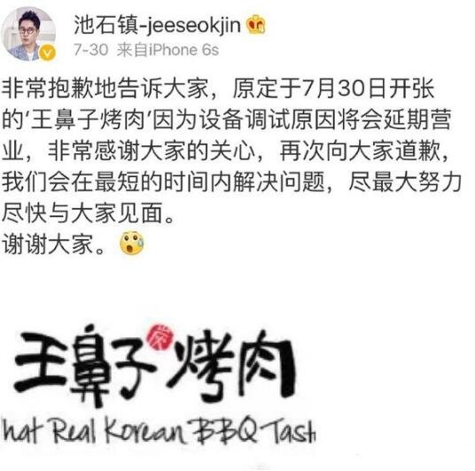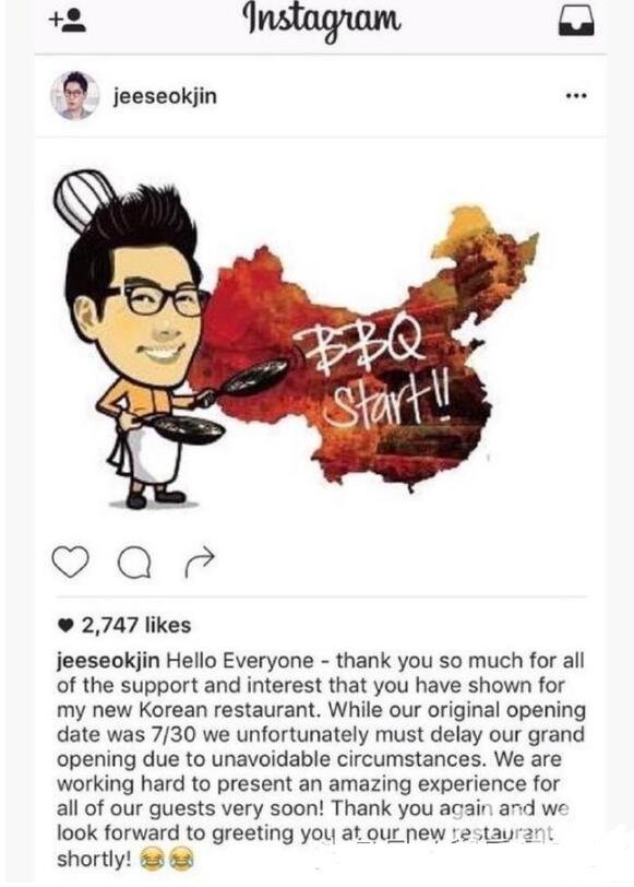 凭借《Running man》在中国有较高人气的韩国艺人池石镇来北京开烤肉店了。他在ins上发中国地图,上面印着烤肉店的标牌,结果地图上海南、台湾、南海等都消失了,店里的菜单也是这种地图。被发现后他悄悄删除,为避风头还找借口说过段时间再开店,但一定会来的。恶心,早点看穿这种丑陋嘴脸,别来捞钱了