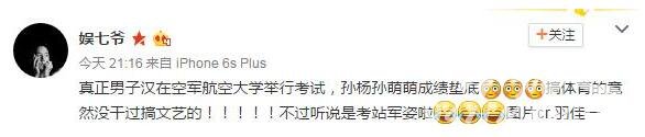 底下有许多网友都替大白杨“伸冤”,说:谁考试考站军姿啊,明明考的是航理。