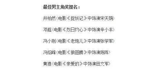 最佳男主角的提名里面,黄渤、邓超、冯小刚都是绝对的实力派。