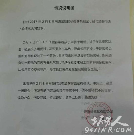 肯德基方面表示,已经于2月8日早致电当事顾客确认事发情况,并表示是一场误会,“视频发布内容与事实不符,请不要转发不实信息,误导公众,伤及品牌。”