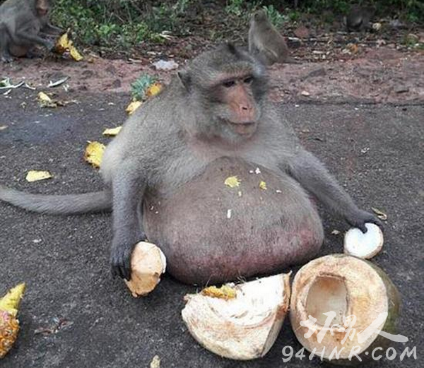 据悉,猴子的平均重量为8到10公斤,但“胖叔”因吃太多游客喂的玉米、香瓜、奶昔等食物,令体重飙升至15公斤。