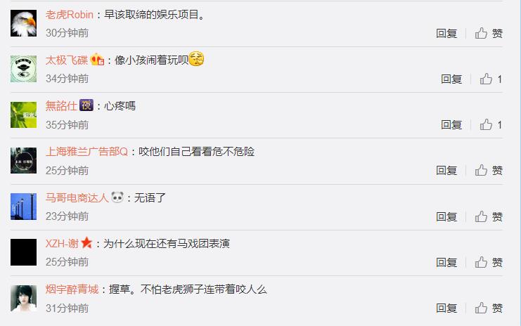 近日,一段“马戏团老虎狮子咬伤白龙马”的视频流传网络。要知道,狮子和老虎都是兽性比较强的,一不小心就可能会撕了你!前段时间不是就出事了,像这种项目应该早日取消!