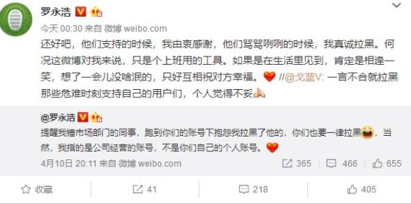 “提醒我锤市场部门的同事,跑到你们的账号下抱怨我拉黑了他的,你们也要一律拉黑,当然,我指的是公司经营的账号,不是你们自己的个人账号。”