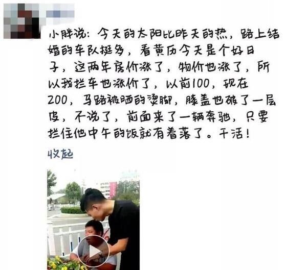 希望以后出来拦婚车的小胖还是自力更生,靠劳动养活自己吧!