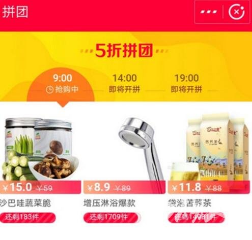 支付宝上线拼团支付宝与淘宝合作发布了限时拼团功能。不少网友发现,在支付宝的首页底部多出了一个“每日必抢”的拼团页面,上面有来自不同淘宝店家的爆款商品,涵盖了日用、食品、服饰等十多个品类。且价格比淘宝优惠,大多集中在 20 元以下,有的甚至低至 5 折。