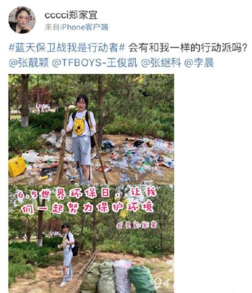 网红郑家宜在世界环保日拉了四袋垃圾去公园,摆拍完留下一地垃圾扬长而去。当日还在网上发博,冠冕堂皇的说着蓝天保卫战,建议原地道歉!
